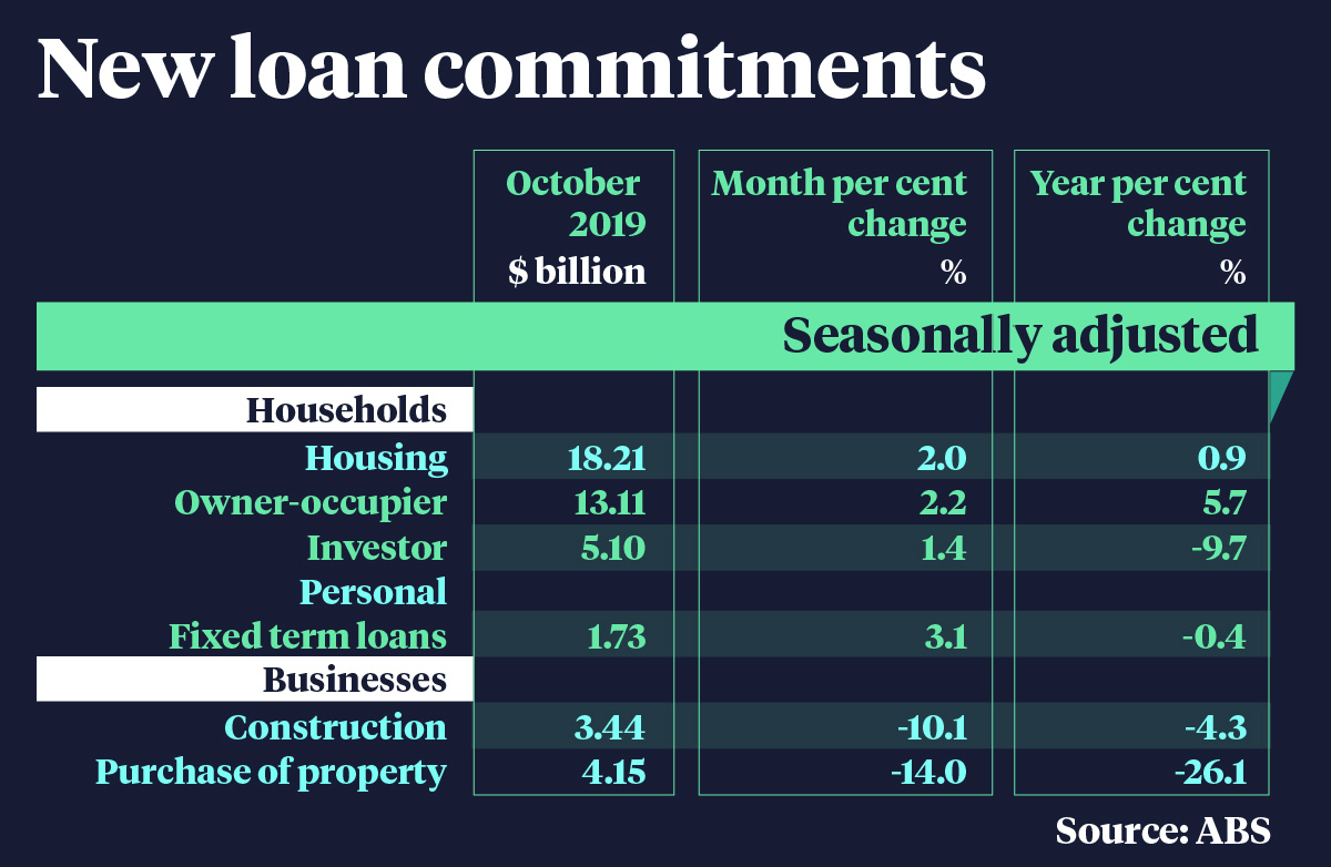 The latest ABS figures reveal the value of new investor home loans rose 1.4 per cent in October, after declining 3.9 per cent in September, while the value of new owner-occupier loans rose 2.2 per cent.