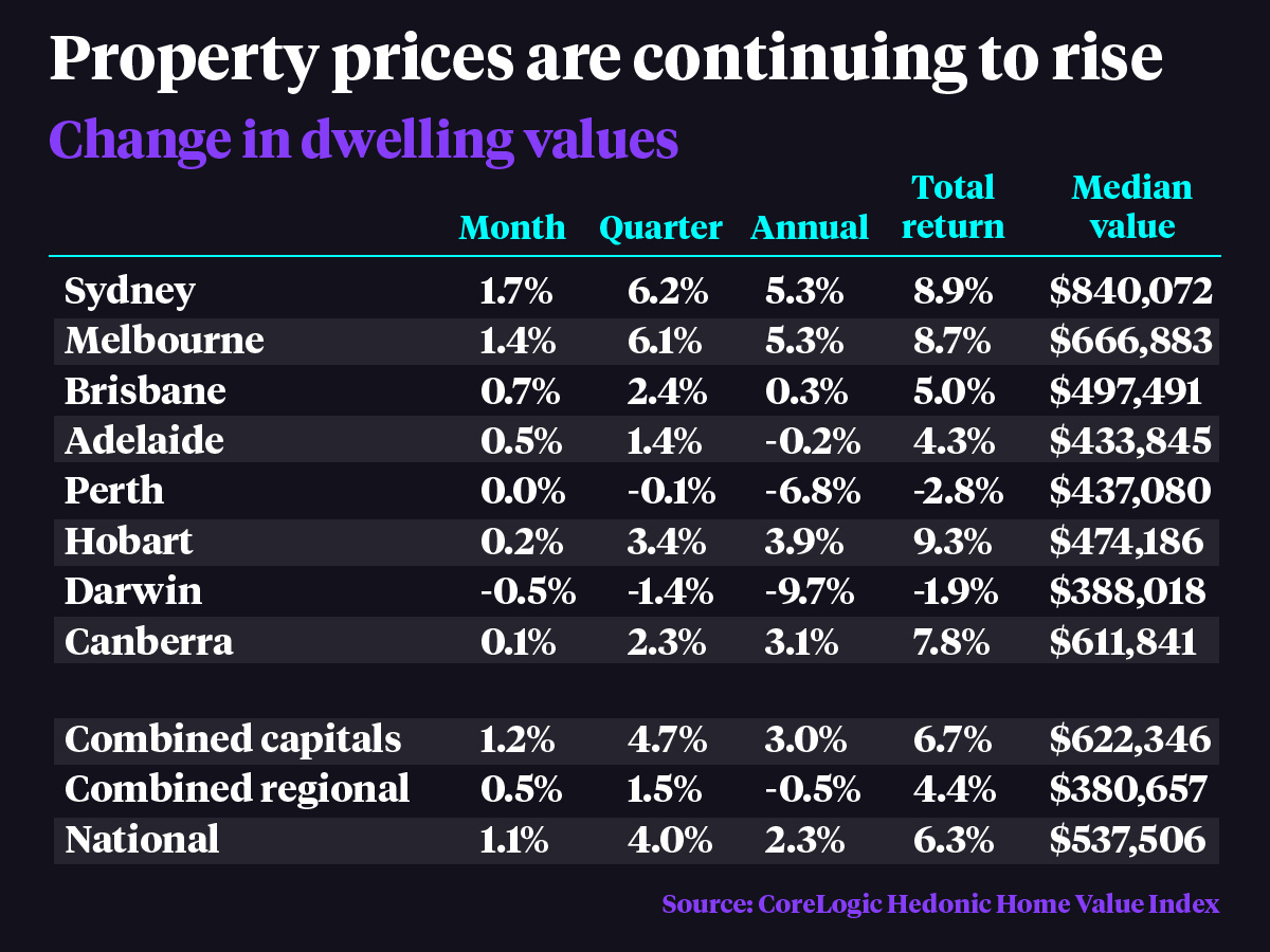 CoreLogic’s final home value index of 2019 showed national property prices jumped 1.1 per cent in December and 4 per cent over the quarter.