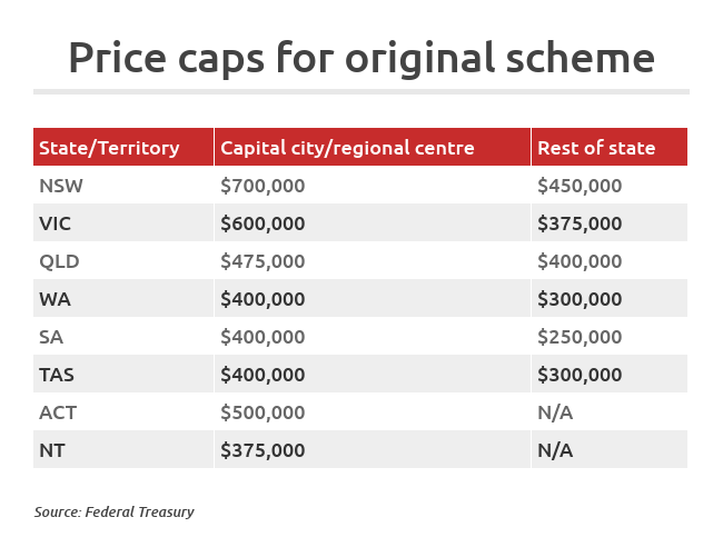 But this time around, successful applicants will be able to buy homes worth up to $950,000 in Sydney, $850,000 in Melbourne, $650,000 in Brisbane, and $550,000 in Perth.