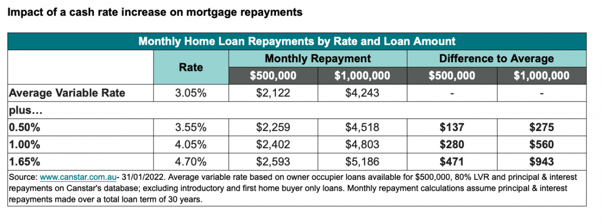 Meanwhile, Canstar Group executive Steve Mickenbecker said borrowers with a $500,000 home loan could be slapped with a $471 rise in monthly repayments if rates rise by 1.5 per cent over the next year, which economists are now predicting.