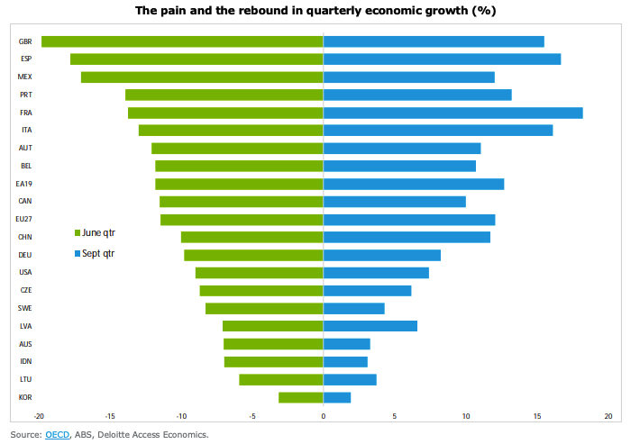 Deloitte’s report also highlighted sectors that were disproportionately hit by lockdowns and border closures are likely to continue a ‘climb back from the abyss’.