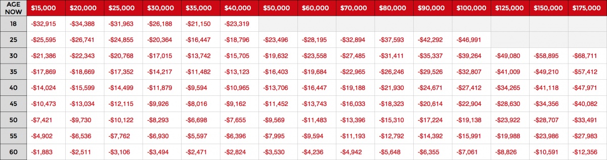 A 45-year-old earning $90,000 will miss out on more than $60,000, while a 60-year-old earning $100,000 will be short-changed upwards of $10,000.