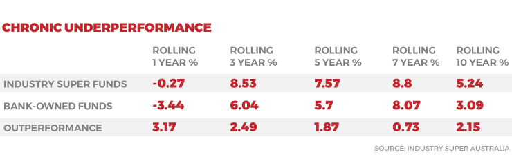 “The chronic underperformance by bank-owned super funds highlights concerns over the banks vertically-integrated business models, which continue to drive lower returns for their members.”