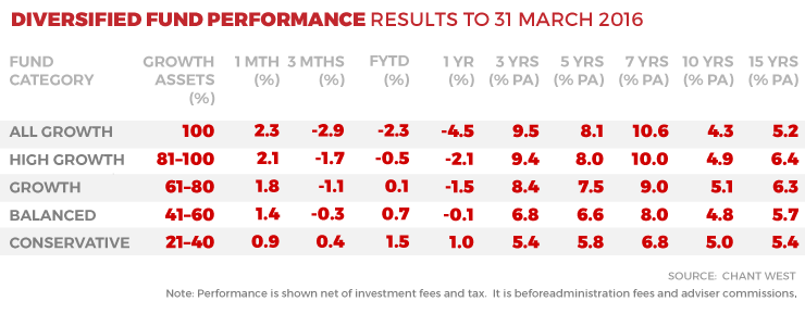Data from research firm Chant West shows those with a median growth allocation saw their funds slip 1.1 per cent over the first three months of this year, while since the start of the financial year returns are barely positive.