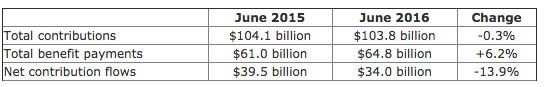 New figures released by the Australian Prudential Regulation Authority show a steep fall of 12.65 per cent in voluntary superannuation contributions in the year to June 2016.