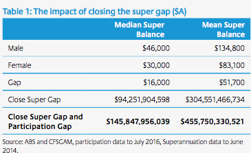 If the gender gap in super balances were to be equalised, it would have a big effect on the amount of super monies available for investment in the economy.