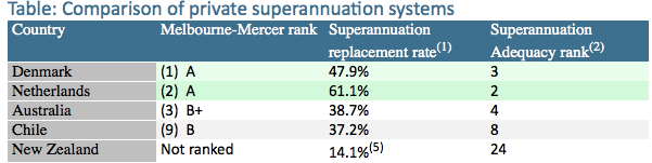 The retirement income systems of Denmark, the Netherlands and Australia are currently ranked first, second and third respectively in Mercer’s 2016 Global Pension Index. Yet, Chile (ranked 8) and New Zealand (no ranking) are being held up as exemplars in the Productivity Commission’s review process, ISA says.