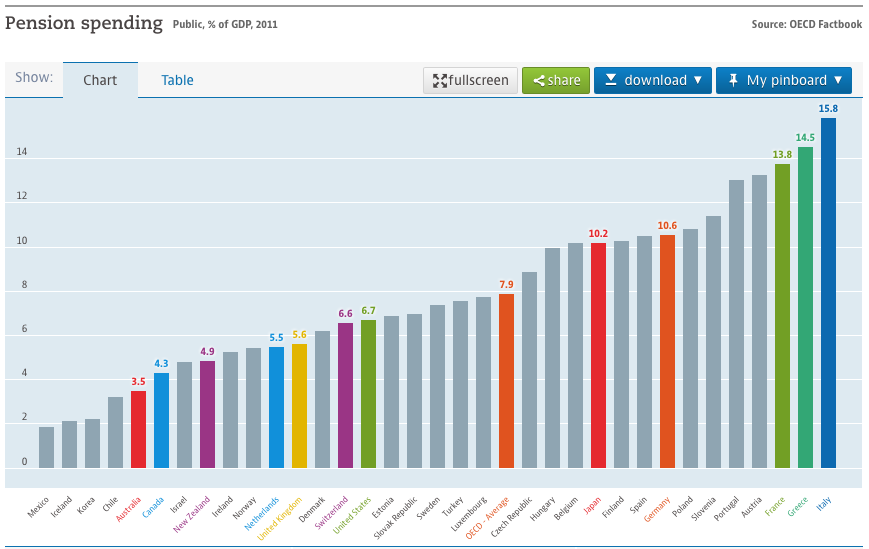 Conversely, countries like France and Italy with low private retirement savings have high state pension costs.