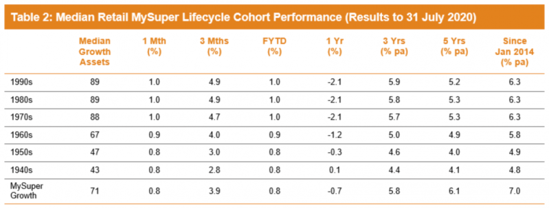 Through July, they returned between 0.8 per cent for older cohorts and 1 per cent for younger cohorts.