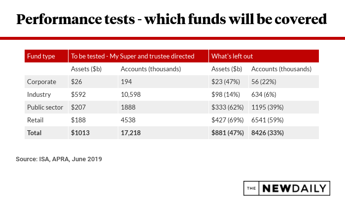 That means the funds invested on behalf of 8.4 million Australian members will not be scrutinised to ensure they make adequate returns.