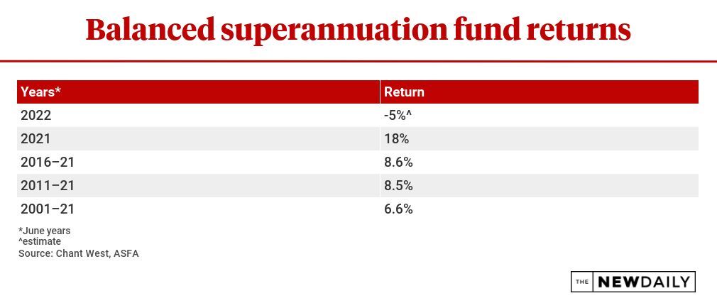 That would mark the worst performance since the GFC and only the fifth financial year in which super funds have delivered a negative result since the inception of compulsory super in 1992.