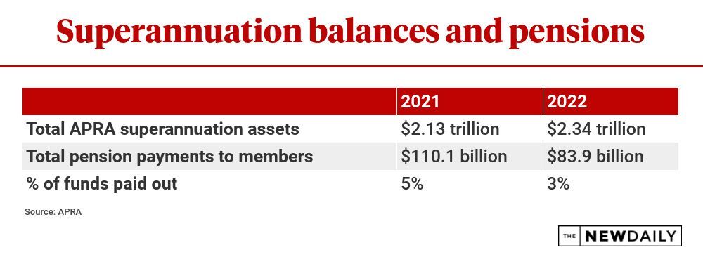 Figures from regulator APRA show that Australia’s retirees withdrew $110 billion from their retirement accounts in the year to March 2021 and cut this to $83.9 billion in the March 2022 year.