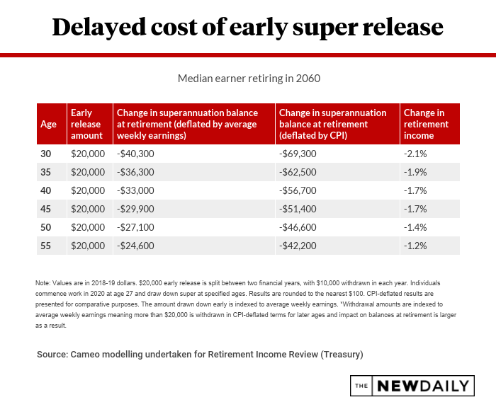But even if you could get hold of your super money early, there is a significant cost to your retirement in doing so.