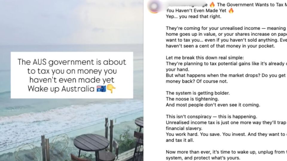 The government isn’t planning a new tax on all unrealised gains, including homes and shares, to trap Australians in “financial slavery”, despite claims circulating on social media.