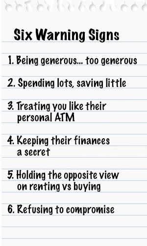 Likewise, Mr Hardingham says if you are saving and your partner is in debt, there should be warning bells sounding.