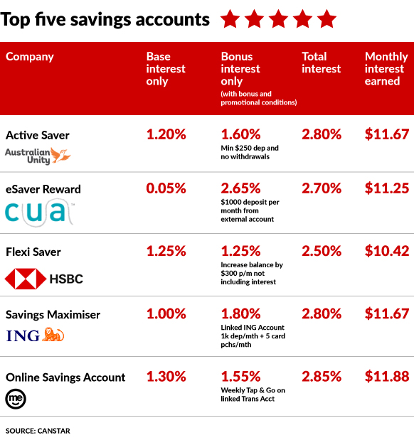 The New Daily used Canstar to research the best places to park your money and came up with a top-five list of savings options.
