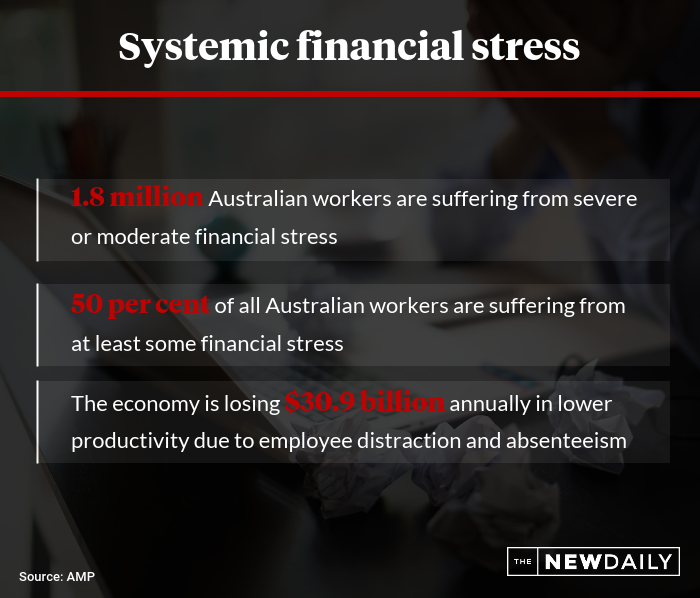 AMP estimates financial stress is costing the economy $30.9 billion every year in lost productivity, “due to employee distraction and absenteeism”.