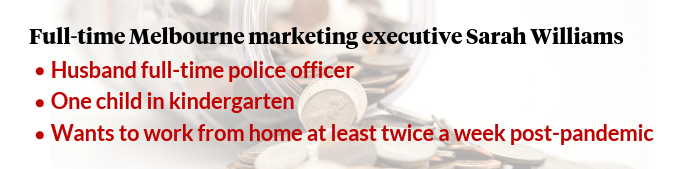 Ms Lofti-Jam says working from home has also prompted her to consider not replacing the family’s second car when it becomes unusable.