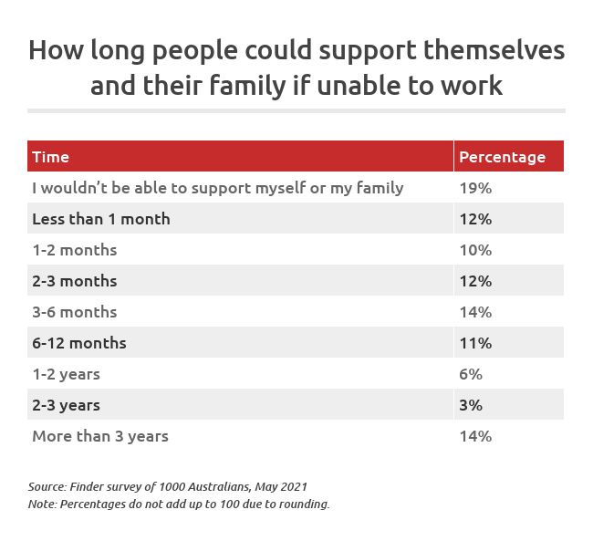 And a further 12 per cent have too little savings to support themselves or their family for just one month without work.