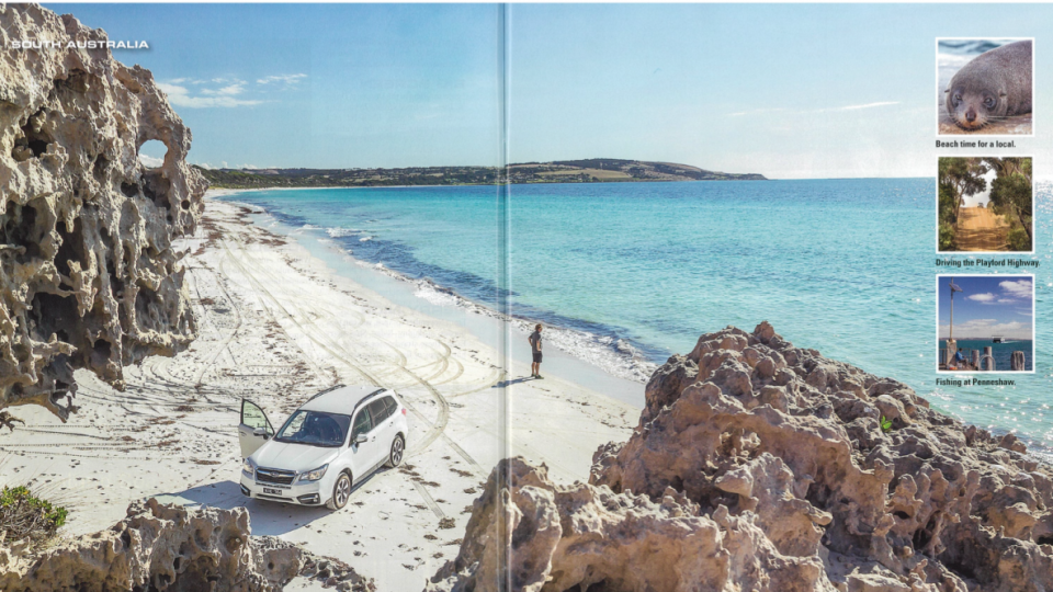 RACV’s RoyalAuto magazine ran a two-page spread in its July issue of a four-wheel drive parked on Emu Bay on South Australia’s Kangaroo Island.