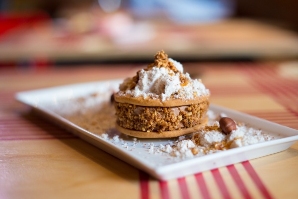 This will appeal to anyone who has ever eaten Nutella from the jar with a spoon, or Baci chocolates by the bucket load. You wouldn’t think to look for a cooling dish at a meatball joint, but that’s exactly where you’ll find this decadent ice cream sandwich. Two house-made cookies encase the velvety chocolate filling, served with a delicate arrangement of hazelnuts.