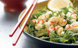 Tip the calamari onto the rocket leaves (make sure you include all the bits of chilli and garlic), squeeze on the lemon juice, sprinkle with sesame seeds and serve with lemon wedges on the side.