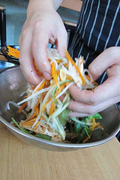 Dress the salad with the Nuoc Nam dressing and mix well with your hands.