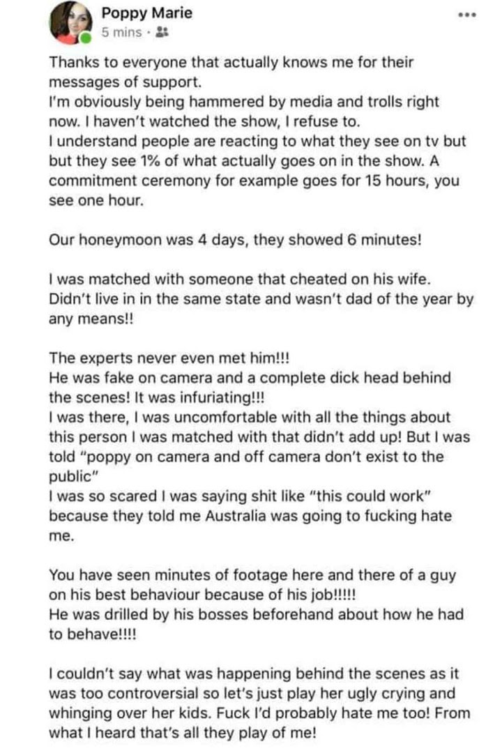 Let’s just be blunt. Poppy is the worst contestant in MAFS history. #mafs #MAFSAU