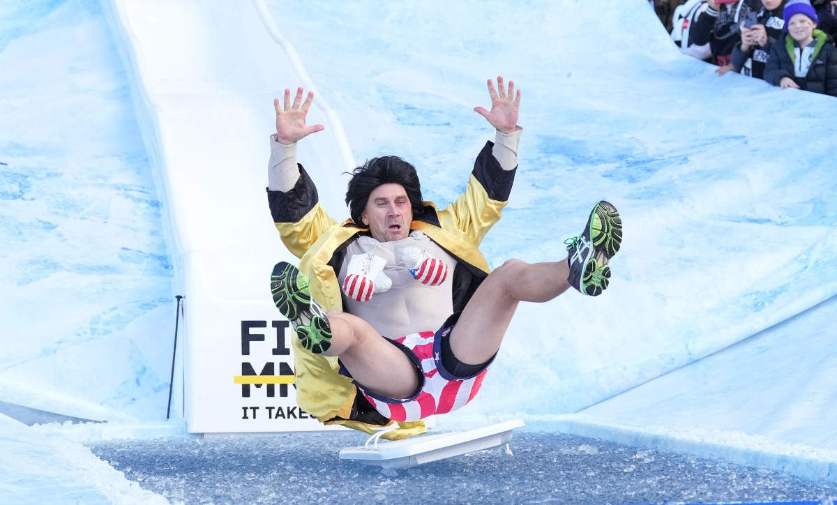 Not even renowned fighter Justin Langer’s trademark icy glare was as cold as the chilly plunge that faced him at the end of the Big Freeze slide.