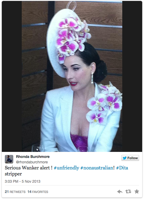 The Melbourne Cup is an important day in the diary of any fashion-lover, famous or otherwise. Australians have come to expect the outrageous, with the best outfits often combining bright colours, crazy silhouettes and haute hats. Some prepare months in advance, meticulously planning an outfit to catch the eye of cameramen, fashions on the field judges or other racegoers. Others clearly have little regard for the high-caliber dress code, or quite simply have no clue. Here, The New Daily shares our picks for those who stole the show for the right, and wrong, reasons.