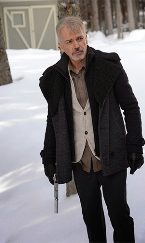 Next we cut back to the end of last week’s episode, with Malvo walking out of Nygaard Insurance having just gunned down Lester’s wife, Linda. Lester tentatively enters the shop, stops over his wife’s body (and has a moment of what appears to be genuine remorse): but then quickly jumps back into slime ball mode. He ducks into Lou’s diner and tries to construct an alibi, telling Lou he just dropped his wife off at the office, he then sneaks out and reports his wife’s murder from a payphone. Before he comes back in to finish his grilled cheese sandwich he remembers his wife was wearing the coat with the two plane tickets for Acapulco in it.