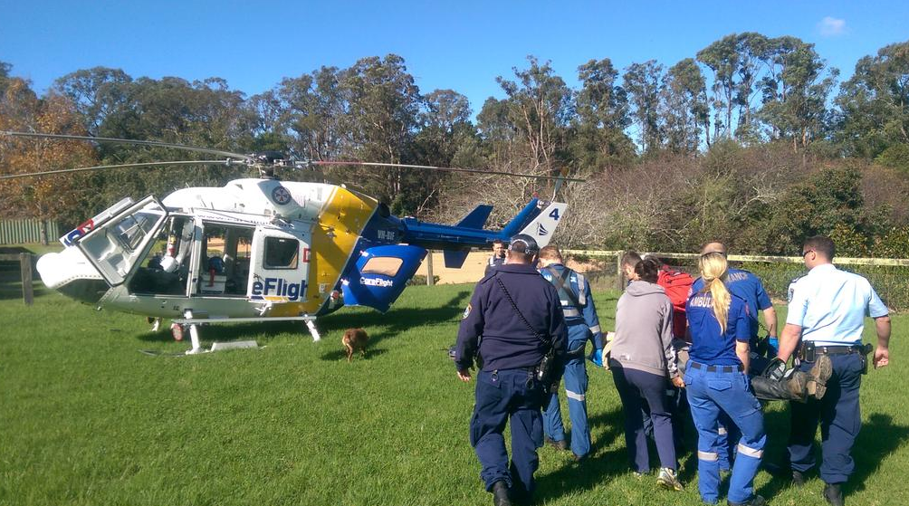 She was taken to Westmead Hospital by helicopter, with a possible head injury.