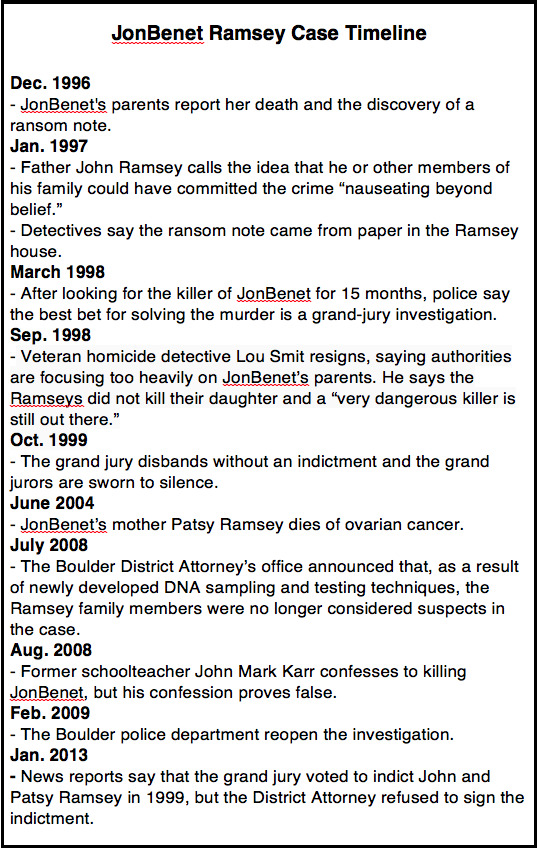 JonBenet’s parents, John and Patsy Ramsey, consistently denied anyone in the Ramsey family killed their daughter.