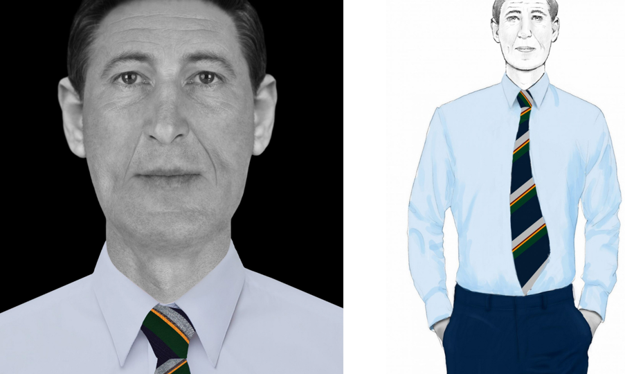 The iron tools he was weighed down with were only recently disclosed by police, his shoes are expensive and his distinctive green, yellow and blue striped tie may signal he belonged to a specific organisation.