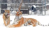 The eight-month-old Amur tiger sings for his mother’s attention.