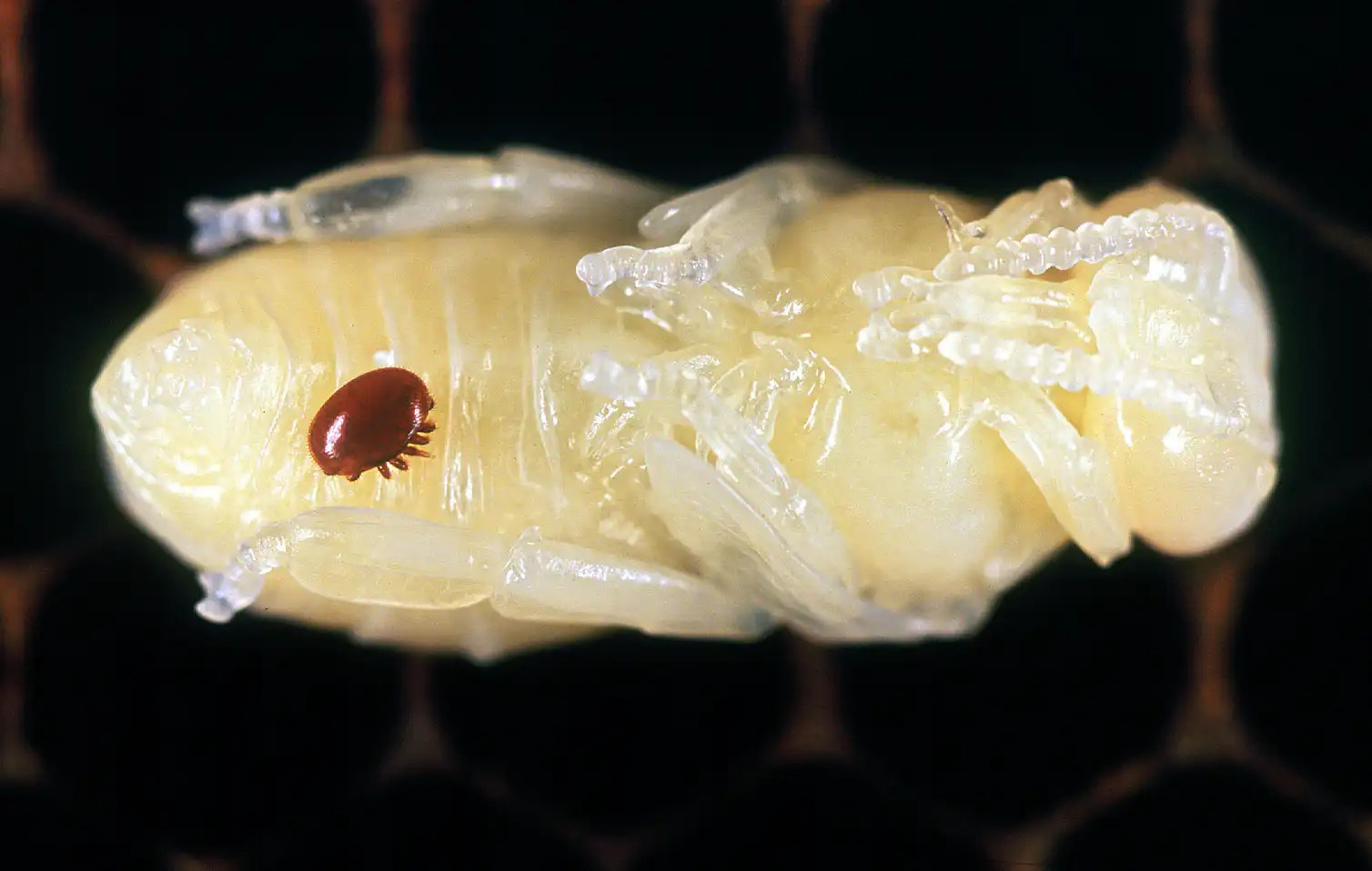 The varroa mite is a honeybee parasite that feeds on the bees’ young and spreads disease, eventually killing the entire colony.