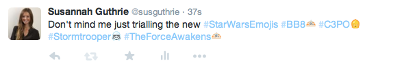 The emoji options include(#C3PO, #StormTrooper, #TheForceAwakens or #BB8.