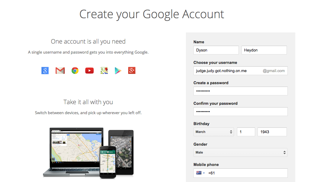 Enter your personal information. Create account (with a quirky email address) and then sign in!