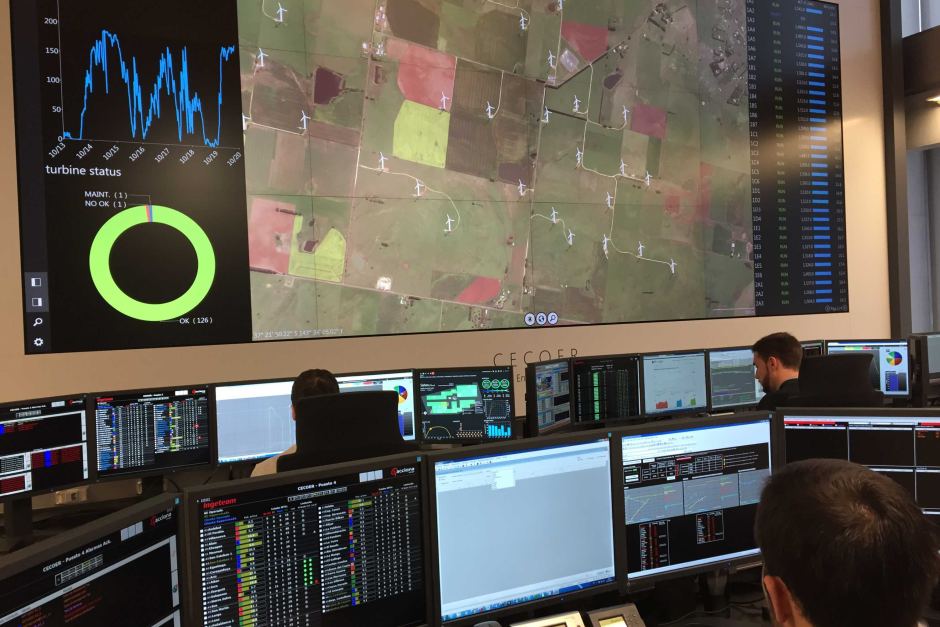 Spanish firm Acciona gave ABC News access to its control centre in Pamplona where it monitors 9,500 wind turbines around the world on a minute-by-minute basis.