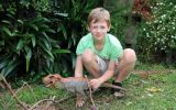 Now the vibrant seven-year-old is happy to discuss his love for dinosaurs, monster movies and his sister, Lauren.
