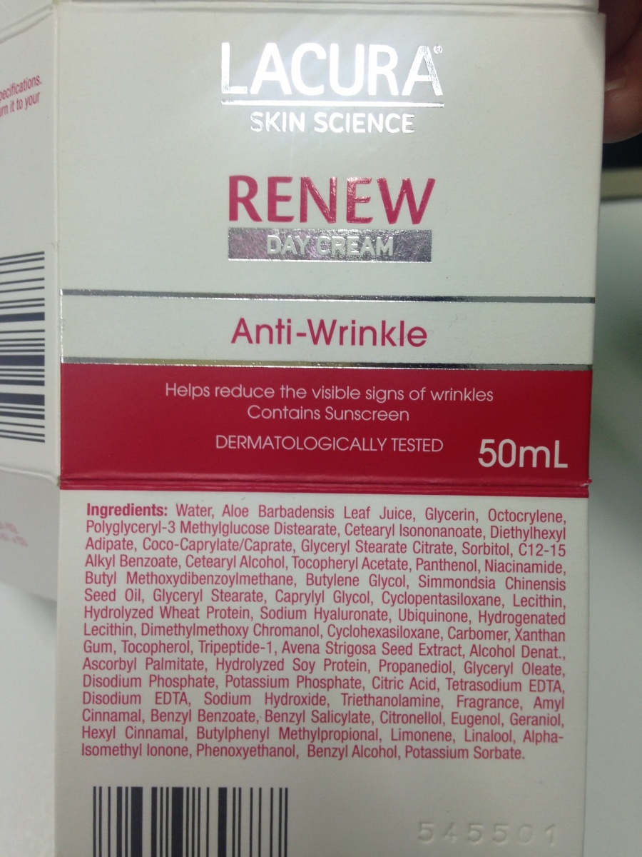 It’s not available in Australia, so I went with Lacura’s Face Renewal Day Cream and Face Renewal Night Cream ($7.99 each) along with Lacura’s Fine Balancing Cleansing Gel ($3.99).