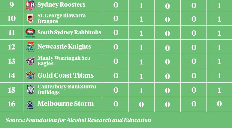 The institute’s Julia Stafford, who works as a research fellow within its alcohol programs team, said the ladder findings showed the growing issue with unhealthy alcohol advertising and sponsorship in Australian sport.