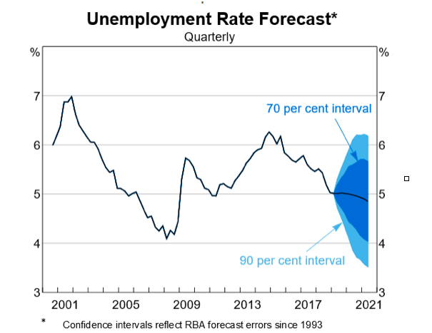 There’s a growing list of private sector economists predicting the unemployment rate will start rising next year, despite expecting two RBA interest rate cuts. The latest outlook from the NAB economics team has unemployment ticking up to 5.1 per cent next year and 5.3 per cent in 2021.