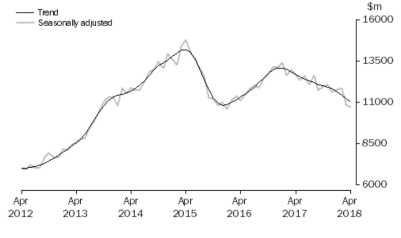The total value of dwelling commitments in April was just over $32 million, the figures, released on Tuesday, showed.