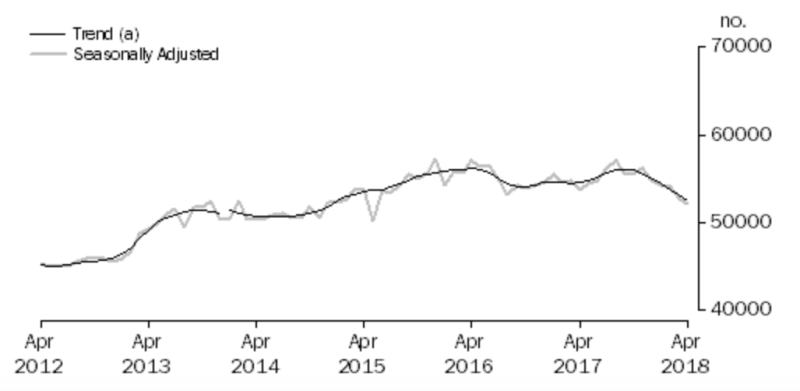 There were 52,588 dwelling commitments by owner-occupiers in April, a decline of 1.1 per cent from the previous month.