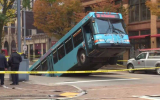 Incredible! A bus partially fell into a sinkhole on 10th and Penn downtown. We’re still working to get more information. pic.twitter.com/aJdFMF13UA