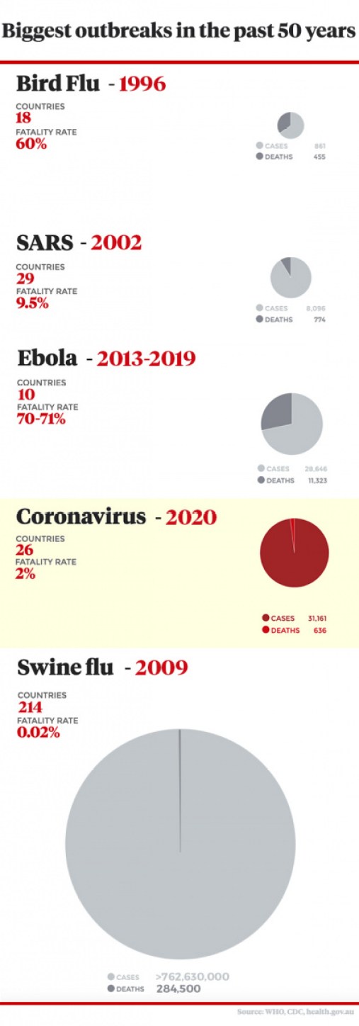 Here is how this new coronavirus compares to other major disease outbreaks that have swept across the world.