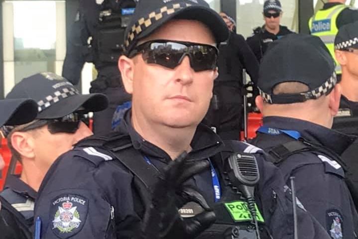 Victoria Police initially claimed the officer was asking if protesters were okay, before screenshots of his Facebook page revealed he had shared alt-right material.