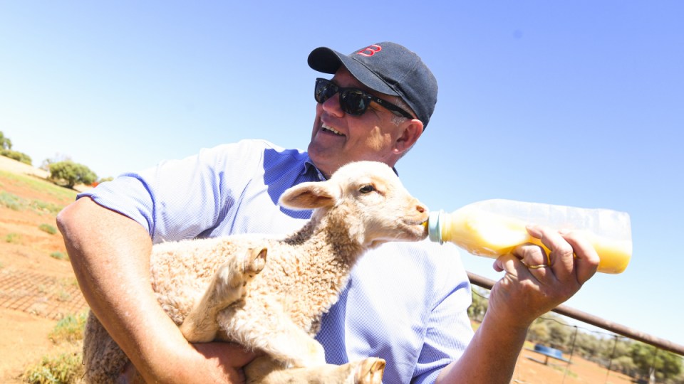 While in the region, Mr Morrison also visited a Qantas museum, inspected a shearer’s shed, and bottle-fed a lamb.