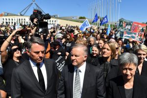 A large contingent of Labor MPs, including leader Anthony Albanese, Tanya Plibersek, Penny Wong and Kristina Keneally attended the rally, as did Greens MPs.